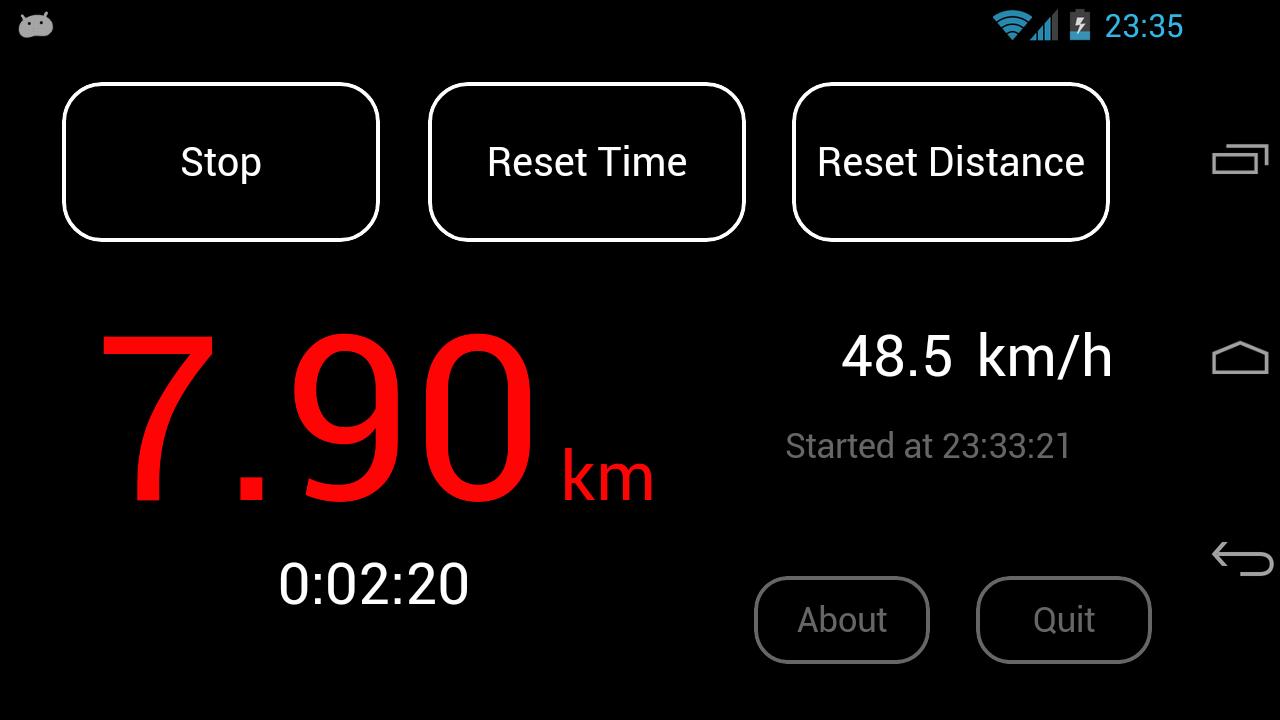 Simplesmente insira sua velocidade média direcionada em km/h (toque em 'Toque para definir' o texto ao lado de 'km/h') e pressione o botão Iniciar. O contador de distância exibirá a distância teórica percorrida. Também apitará a cada 100 metros para fornecer feedback não visual adicional ao copiloto.